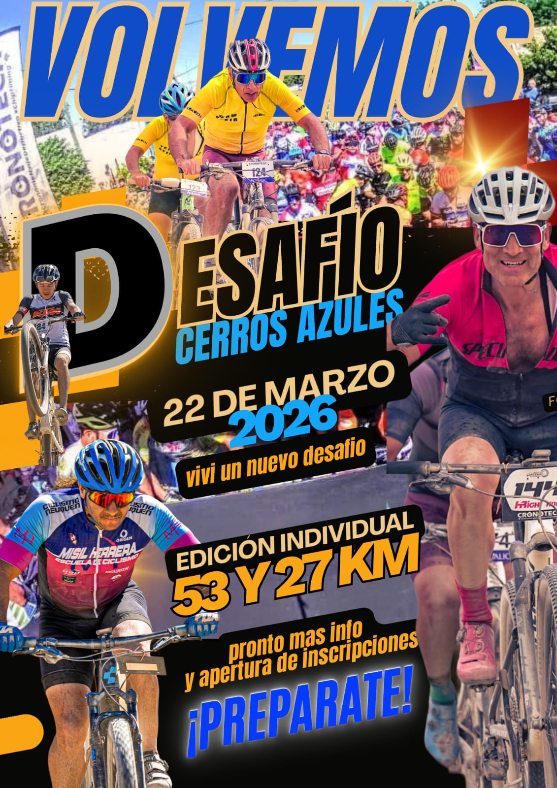 La siguiente invitación en Allen también es para ciclistas, pero esta vez en modalidad mountain bike. Después de un tiempo sin actividad, vuelve al ruedo la conocida carrera «Desafío Cerros Azules«. Nuevamente, el anuncio llegó a través de las redes sociales del evento y también de la difusión de la empresa de cronometraje contratada. La cita es el domingo 22 de marzo, con 2 distancias a recorrer: 53 y 27 kilómetros. Se correrá en forma individual y muy pronto estarán habilitando las inscripciones.