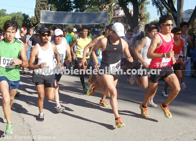A las 18.06 se bajó la bandera que marcó el inicio de la competencia. El trazado llevó a los participantes por Av. Libertad, de punta a punta. Unieron con sus pasos el anfiteatro, hacia la zona de «El Laguito» y luego bajaron por la avenida nuevamente hacia calle San Luis. El primer parcial fue de 15 minutos exactos y García de Roca lideraba la competencia. Detrás asomaba el local Sergio Reyes y el pampeano radicado en Roca, Javier Fermín. Entre las damas, la veterana Miriam Quintreman iba puntera y más atrás marchaba la saltense Lorena Torres. El mejor tiempo de los 5 kms fue para Franco Aguayo de Villa Regina con 15m36s. Cerraron el podio Juvenil Matías Benitez y Gabriel Muñoz.