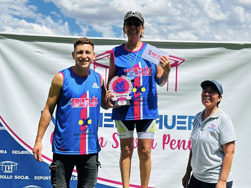 El experimentado atleta Gervasio Sosa (foto de portada) fue otro de los protagonistas del Triatlón de Huergo. ‘Gerva’ hizo la natación en 27 minutos, superó la parte de ciclismo en casi 2 horas de pedaleo y en el pedestrismo hizo un buen tiempo, sumando 34 minutos. Así, con 2h51m24s, se metió en el podio de los Veteranos C. Ocupó el tercer escalón, acompañando a ‘Bocha’ Carrasco de Regina y a ‘Ricardito’ Asquinazi.