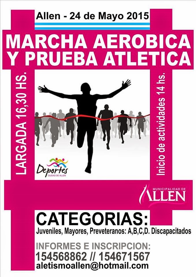 En una mirada ‘bien de Allen’, ponemos en primer lugar la cita de la Corrida Aniversario. En mayo la ciudad cumple 105º años de vida y nuevamente el deporte se suma a los festejos. Desde el área municipal confirmaron la fecha de la prueba atlética de 10 kms. Será el 24 de mayo por la tarde con un recorrido clásico que abarcará gran parte del boulevard de Av. Libertad (ahora renombrada Av. Eva Perón). La carrera tendrá además una vuelta de caminata recreativa, destinada a la familia o principiantes. Si bien aun no han detallado costos o premiación en juego, es una costumbre que la inscripción sea muy accesible y que se valore el esfuerzo de todas las categorías y de los atletas especiales. Para consultar o mayor información, comunicarse al email atletismoallen@hotmail.com o a los teléfonos que figuran en el afiche oficial. Por otro lado, Allen tendría un torneo de atletismo de pista y campo en su grilla de festejos. La fecha estimada es la del sábado 16 de mayo en el predio de la Isla 16. De esta competencia hay poca información aun, pero iremos publicando en redes sociales los detalles de la convocatoria.