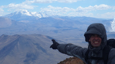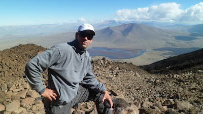 «Cachi» Paglialunga supo de este objetivo porque trabaja como profesor de educación física en El Portón, un conocido yacimiento petrolero cercano a la reserva. El 18 de enero a las 6 am, Cachi emprendió su primer encuentro con el volcán. Recién a las 14 pudo respirar el aire inmenso de la cumbre. Y disfrutar la sensación del objetivo cumplido. «La superficie fue variando, la primera parte es todo monte y arena suelta. La segunda parte es rocas con arena, la tercera y una de las más complicadas es la de los escóriales (roca negra formada con la lava del volcán con una superficie muy filosa). La cuarta parte comienza a los 3.500 mts, nuevamente rocas con arena pero con una gran inclinación», relató Paglialunga.