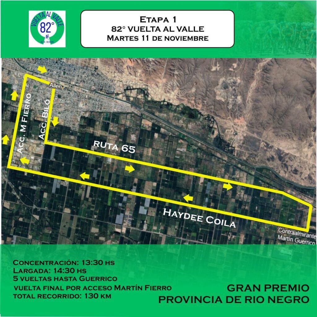 Sin el prólogo, se definió por sorteo el orden de los auxilios y hoy no habrá un ciclista que vista la malla lider al iniciar la primera etapa. Esta tarde, desde las 14.30 horas, el lote de 200 participantes rodará entre Allen y Guerrico hasta completar 5 giros. La partida y llegada se montarán frente al edificio municipal y la competencia irá por Ruta 65 y calle rural 4 principalmente. Sumarán 130 kilómetros de esfuerzo.