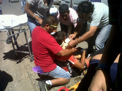 Cuando casi iban 45 minutos de competencia y el lote giraba en el ingreso a Allen, una caída echó por tierra las esperanzas de Lucas Gaday Orozco. El hombre del equipo de Walter Pérez se desplomó sobre el asfalto en uno de los accesos y dejó con el corazón en la boca a sus familiares y compañeros. El golpe fue duro y el ciclista debió ser atendido por las ambulancias que siguen al pelotón. Según relató AM 740, su indumentaria daba cuenta de la fuerza del impacto pero Gaday Orozco se recuperó rápidamente. Algunos estimaban que tenía una fractura de clavícula y se asustaron por ver algunas gotas de sangre en su rostro. Sin embargo, luego se supo que sólo era un corte en el pómulo y que recibió 2 puntos de sutura.