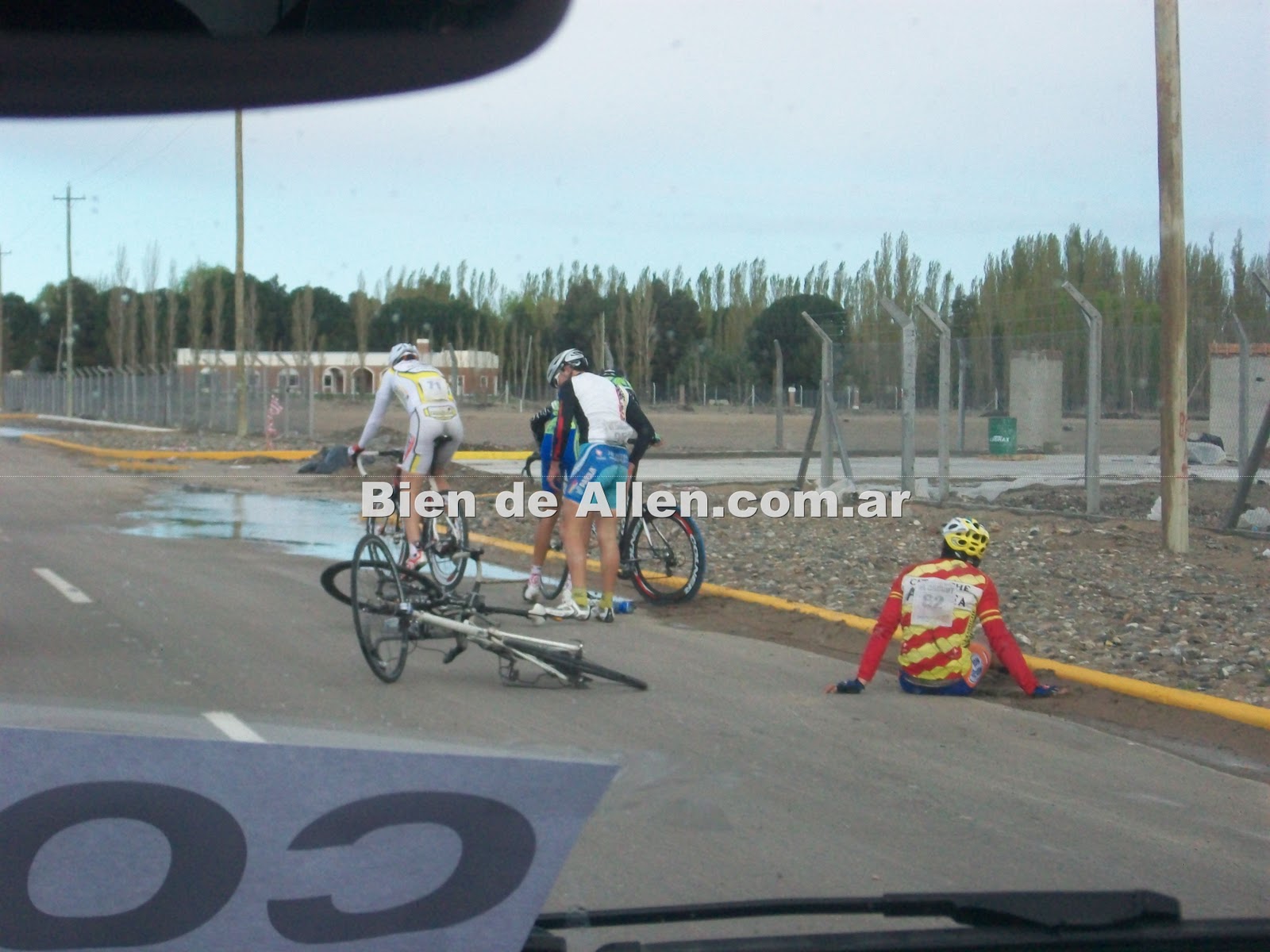 Un allense protagonizó la primera caida fuerte del domingo. Omar Jider rodó hacia la banquina, en el ingreso a Rawson, cerca de Playa Unión. El golpe fue duro y el allense no podía levantarse. Fue asistido por la ambulancia y los médicos lo revisaron y curaron sus heridas. Lamentablemente, su bicicleta quedó destrozada. Jider dialogó esta mañana con AM 740 y aseguró estar golpeado y dolorido, pero bien.